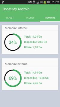 • BOOST : Click on the "BOOST" button to raise the speed of your phone. In 2 clicks only, the app will boost the RAM of your smartphone by erasing all undesirable background tasks.