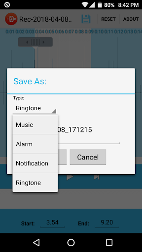 Cut the best part of your audio song and save it as your Ringtone/Alarm/Music File/Notification Tone.