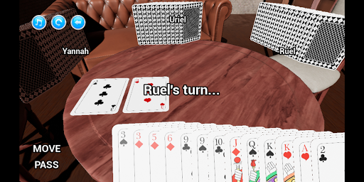 A popular type of "shedding" card game with origins in the Philippines. This is the 3D version of https://play.google.com/store/apps/details?id=com.ferdinandsilva.pusoy with improved AI players.