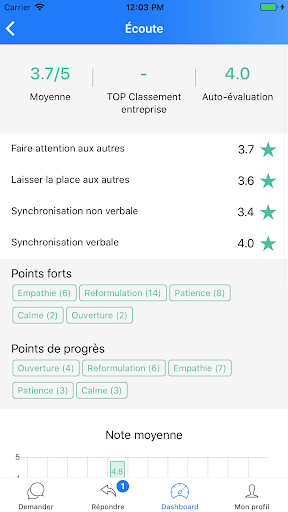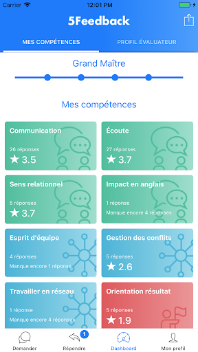 5Feedback est une application de feedback en continu permettant d’évaluer ses compétences comportementales. Elle vous permet d’interroger votre réseau professionnel sur vos compétences tout en garantissant la confidentialité des notes obtenues et l’anonymat des réponses. Grâce à des réponses rédigées par des experts mondiaux (HEC, London Business School,…), visualisez de manière simple vos notes, votre progression, ainsi que vos points forts et vos points de progrès.