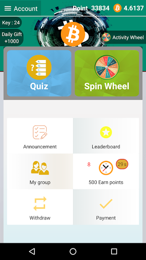 Solve questions, spin the wheel, earn points Earn real coins with your points