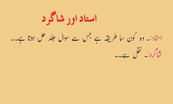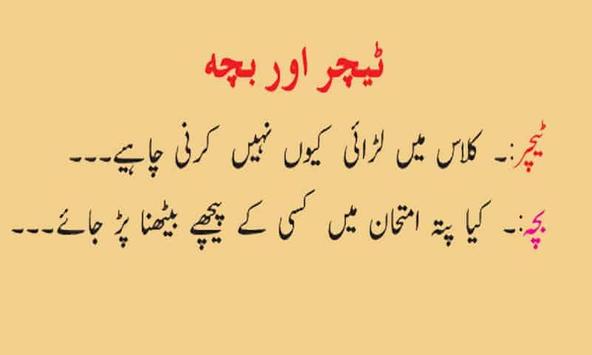 Enjoy our funny Jokes android app when you are fed up of works. Read this Urdu funny Jokes collection when you are alone and feeling board. You can also make happy your friends when you are in a company and talking Jokes.This Jokes app is very good companion when you are feeling board and you have no friend for talking and time pass. Urdu Sardar Jokes, Pathan Jokes,School Jokes are nice.