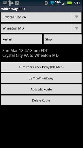 The buttons are in order of increasing commute time and each button displays the estimated time of commute (based on *your* historic commuting data) before the name of the route.