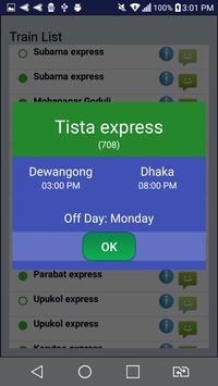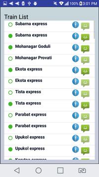 After getting started, you will get a list of all Intercity train in Bangladesh. You can get all train information such as source, destination, off day, departure and arrival time(approximate). You can also get current status(Online/Offline) of every train.