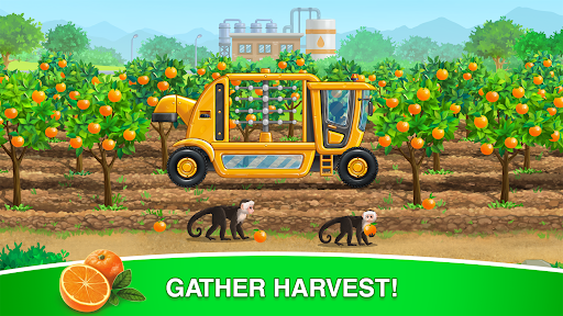 Funny educational games for children will catch your kids' attention and let them learn in a playful way! Kids build agricultural trucks and drive them around the farm. From 2 to 5 years old children will work on a farm simulator and care for orange trees! Kids put orange seeds into the soil, water them and watch them grow in real time!