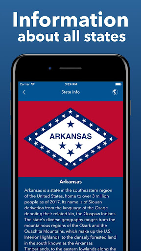In this application you will find tips or interesting facts for each question. Learn a lot about the United States and its history. The geography, flags and capitals of the USA!