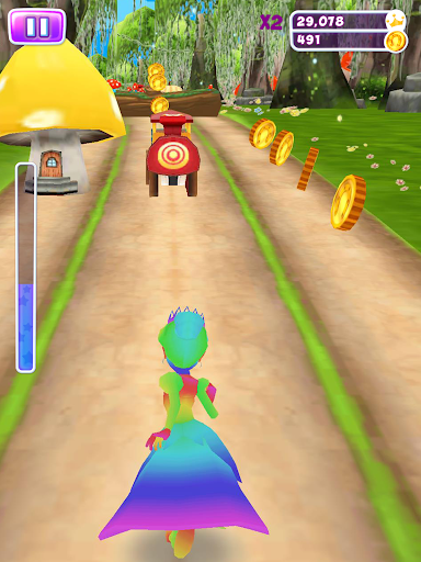 Fairy Run - Princess Racing Rush, it is always important to collect as many coins as possible. After collecting enough coins you will be able to watch the rainbow appear in the sky as the amazing coin boost starts! While the rainbow is ahead of you, be sure to jump and slide in order to collect as many extra coins as possible.