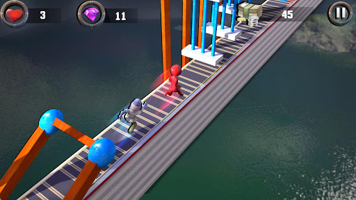 Get yourself into the best human running game while zombie is behind you to catch you. Be the fast by avoiding obstacles when you are running or rush through the sky without failing. In this zombie’s fun run: smash 3d human game you have to control a human by passing the hurdles on the sky tracks and be the first to cross the wall. You have real Parkour experience in your devices just tap on the screen to jump from one wall to another wall. Be the fast to climb on the ropes, slide faster, back flip, jump higher and grab rope to swing, don’t for get to use monkey bars to not fall or beware from Zombie.