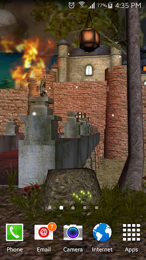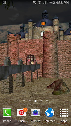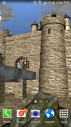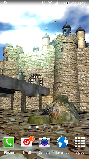 Medieval castle surrounded by water live wallpaper with day and night cycle, this live wallpaper have: