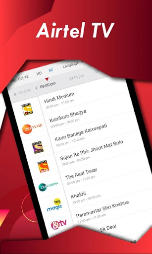 Tips for Airtel TV & Airtel Digital TV Channels All the tv channel are put in distinctive categories for smooth seek. DTH app has each normal and Channel HD. it is loose television channel download app - television apps download free.