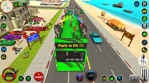 Dance on beach with other American tourists in bus driving games and enjoy city bus driving simulator 3d gameplay. Buy different food stuff like burgers, pizza, sandwich, ice cream etc. in bus driver simulator, city bus driving games & coach wala game. Perform your duty in indian bus car games simulator & transit bus lorry games like a real city bus driver simulator and drop the passengers to the desired location in car driving game.