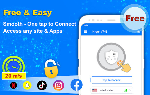 Higer VPN is free fastest and unlimited to unblock any content all your favorite websites and apps, improve your gaming experience, browse privately, anonymously and secure your device. easy to use, tap the connect button, you can fully protect your online privacy and secure Wifi hotspot. Enjoy the best unlimited VPN service with Higer VPN.