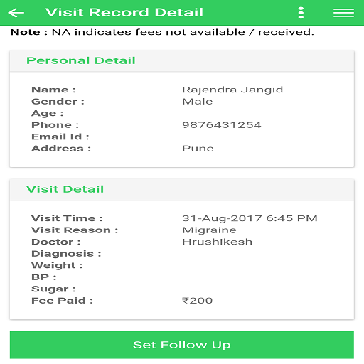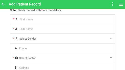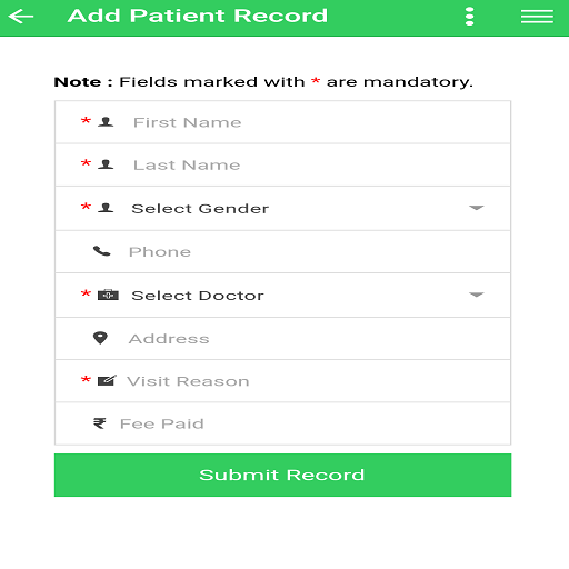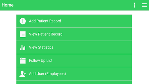 With this application you can Add Patient Record on patient visit, Set Follow-ups for next call revisit the clinic if needed, Get the details of each day records (Statistics), crete Users Account (Add Users), Manage their access (Activate/Deactivate), Edit Personal and Edit Clinic Information if the admin/owner has logged in.