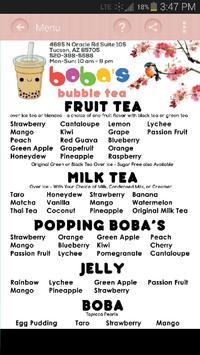 Welcome to Boba's Bubble Tea. We are breaking all the rules and taking tea to new heights and a refreshing place it has never been before. We offer a wide selection of options and amazing creations to please all palates! At Boba's Bubble Tea, we only use the highest quality ingredients and we pride ourselves on freshness and excellent customer service. Check out our wonderful menu of tasteful drinks!