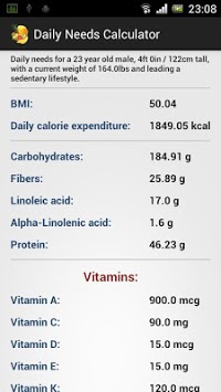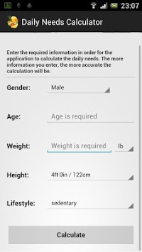 Calculate your daily needs with Daily Needs Calculator. Then find useful information about each of the nutrients as in why it is important, recommended daily dosage, deficiency effects and many more. The application also provides register and login functionality if the user has internet connection. By registering and logging in you will be able to save and update your daily needs and check them out when you need to.