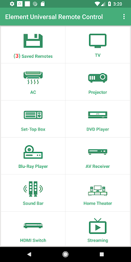 Once you have Configured this Element Universal Remote app with your Element Device it can easily be found in the "Saved Devices".