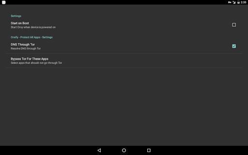 - Optionally let some apps bypass Tor, like banking and email apps, by selecting them in the 'Bypass Tor For These Apps' list.