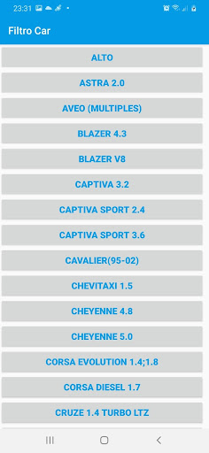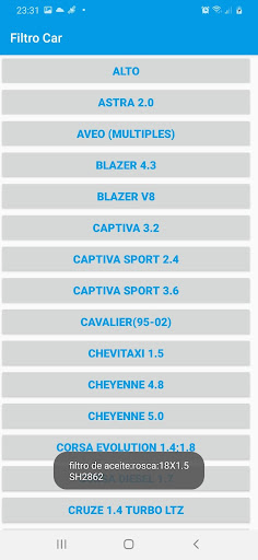 इस ऐप में आप थ्रेड का आकार पा सकते हैं, यदि आप अपने वाहन के लिए मोटर तेल फ़िल्टर का एक विशिष्ट चिह्न चाहते हैं, तो कोड। आपको फ़िल्टर प्रतिस्थापन जानने में मदद करता है।