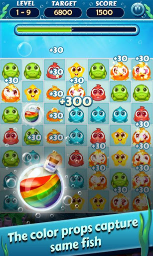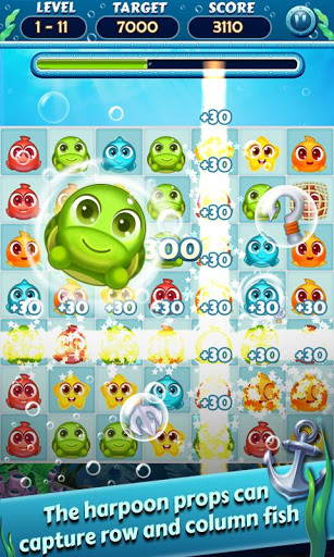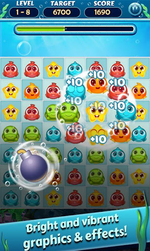 - Connect two or more the cute fish to score points.