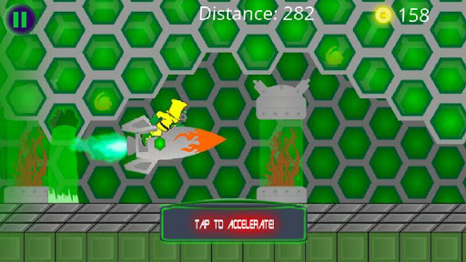 Toxic Dash is a 2D side scrolling endless runner game that brings a new perspective to side scrolling runners. You can swipe the screen up or down to switch between three lanes and tap to jump over obstacles. The farther you get with in the game the faster you go and the harder the obstacles become. Jump over boxes, avoid unstable ground, collect coins to purchase equipment that can help you progress farther in the game and dodge lasers all while trying to escape a deadly toxin and a mutated monster that is chasing you through a laboratory.