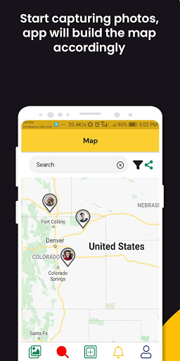 Explore the intuitive map and either swipe or search a specific location. Zoom in and out, and see your geotag photos on all places you traveled to. Forgot to add a specific geo location photo? Upload with ease using the gps map camera and add as many details as possible for your social travel diary.