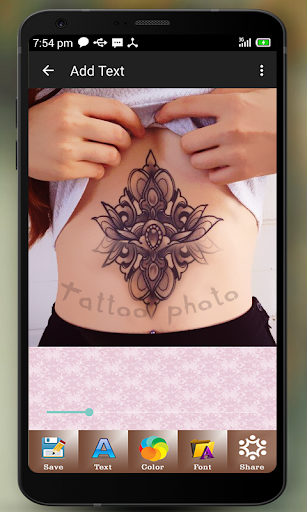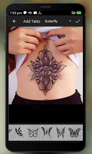 Editing tool of the app which contains a lot of artistic tattoo ideas for all (rose, dragon, tribal and much more!).