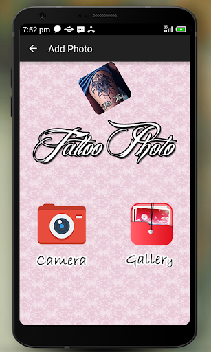 your own photos. Using our app you will feel like in a virtual tattoo salon or photo machine. Just choose any pic from gallery or take one using camera, choose the tattoo design that fits to your style, rotate, resize, save and share your effect!