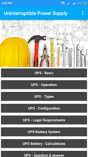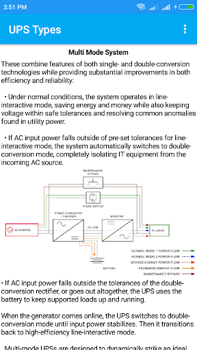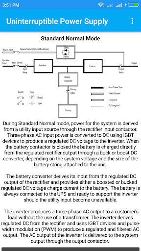 UPS is one the most important equipment in Facility Management and those who working in Facility/Property Maintenance will always need the knowledge of UPS. I created this app to support them. This App contains Basic Principles of UPS, Parts Explanation, Maintenance Guidelines, Do's & Dont's and Battery Backup Calculation.