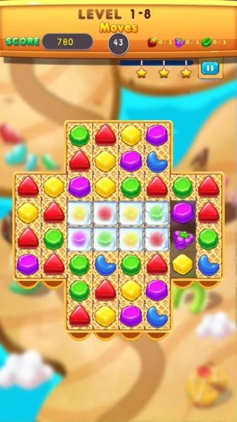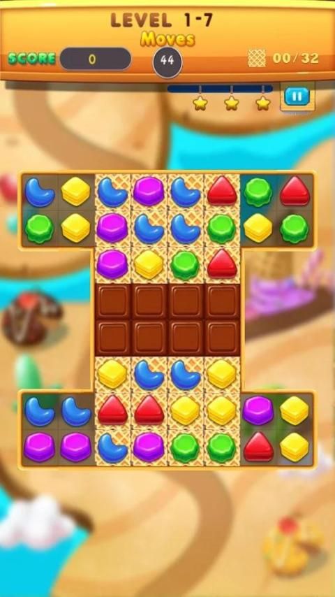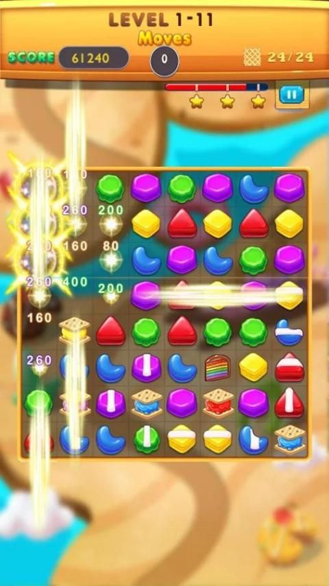 Match candies and collect them. Create rows of columns of 3 or more Candies of the same color to collect or blow them.