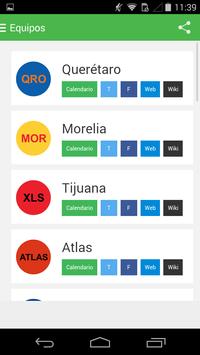 Acceso a Calendario por equipo y redes sociales de cada equipo.
