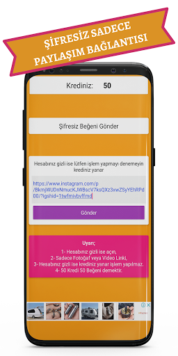 Our application works with credit. You have to earn or buy credits to be able to enjoy likes without a password. You can earn credits by watching ads to send free likes, and you can increase likes without a password and send followers without a password with the credits you earn.