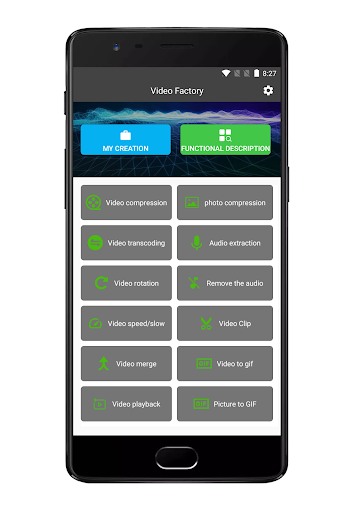 One supports video compression, video cropping, image compression, video transcoding, video extraction audio, video angle rotation, video removal audio, video speed, video merge stitching, video to GIF, video rewind, multiple pictures to GIF, etc.Functional App.Keep the resolution unchanged and compress, the compressed video and the original video have almost the same resolution.Support 4k, 2k, 1080p, 720p compression.Support large file video compression, support video compression above 2G.Video format conversion function-convert video to high-quality mp4 format-support most formats of video transcoding, support MKV, FLV, RMVB, 3GP, MPEG, WMV, MOV to MP4, AVI, FLV, MOV extract videoThe audio in is saved as mp3 and stored to the sd card.