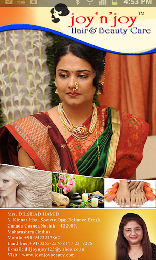 Joy N Joy, Hair & Beauty Care Is Not Only A Beauty Parlour But Also A Personality Development Center.To Beautify A Feminine Body Of Any Age Is A Tough Job... But We Do It Skillfully. Today's Modern Beauty Science Has Proved Its Capacity to Make Cheerful Miracle Changes in the Beauty World. The Technique And Treatment Covers Care For Body, Skin And Hair.