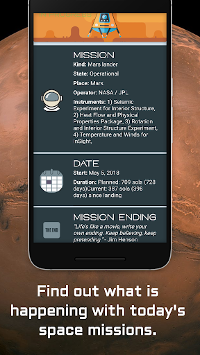 This App Daily Exploration lists and illustrates details about space missions, whether past, future or ongoing.