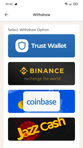 You can withdraw your earnings in your Trustwallet, Binance, Coinbase and jazzcash.
