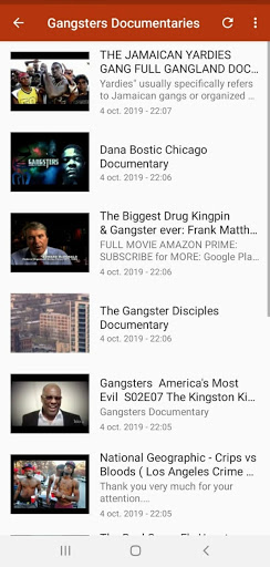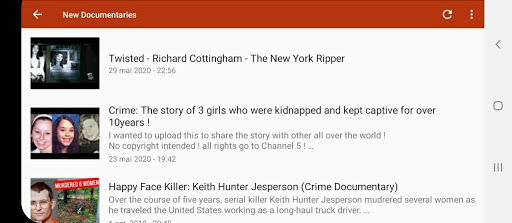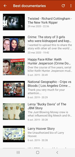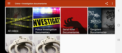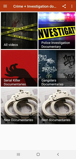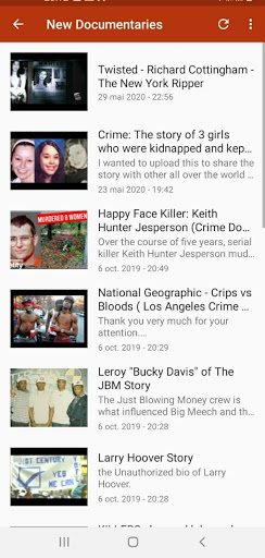 The documentaries are categorized: Gangsters documentaries, Serial killer, Police investigation and more ...