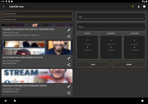 You can share the video with people from this app and when they click on the video link shared from this app, the video will start playing inside the App from the timestamp you saved it with.