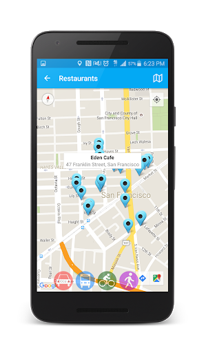 Easily find nearby places around you with further information such as contact details, opening hours etc.