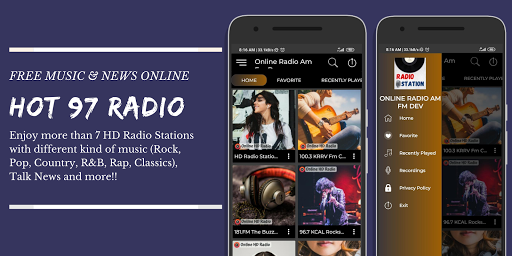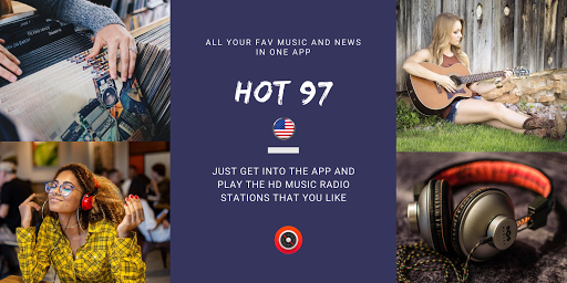 With this RADIO PLAYER APP "Hot 97" it is possible to listen to the TOP HIT Music of the month, and several kinds of music like pop, rock, Classic Hits, Country Music, news radio programs and much more for free!