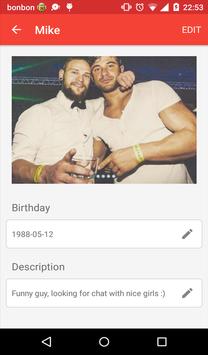 Chat with person that you like and meet them in person. Features: - unlimited messages - send likes - matching by filter - easy to use NOTE: We are not responsible if some images are inappropriate.