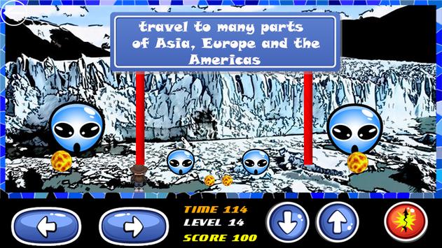 The object of the game, a Pang or Buster Bros. clone, is to shoot up at aliens with a grappling hook gun which divides the aliens into smaller ones until gone. The player moves from level to level, travelling all around the world, fighting in the most famous places.