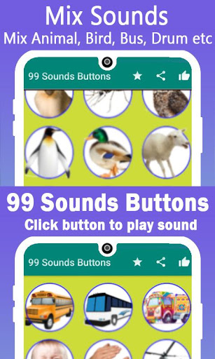 99 sounds button is a sound app that has 99 sounds buttons with sound.