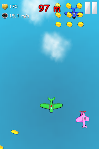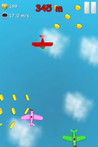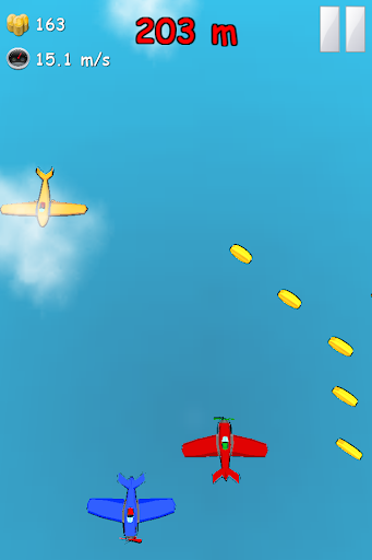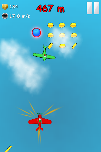 Zoom through the sky, collect coins, buy new airplanes, upgrade your power ups and see how far you can fly! Tilt or Tap your device to turn your airplane.