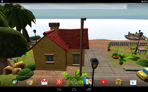 Cartoon Beach Free is a 3D live wallpaper for your Android phone. It shows a house on the beach.