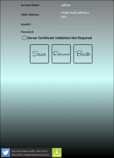 Read My Email application will allow the users to safely keep track of their important emails while on the go. Once configured and started, the application will read out aloud the new mail details from the inbox. The mail details includes "From", "Received on" and the "body of the email". There are various options to configure the service available with the application, like Locale for reading the email, Frequency of polling the email server, stopping the email, skip the current email, go back to previous email, configure number of new emails to read and managing various email services. This application comes with standard email services and allows the user to add their own email services. Currently this application supports IMAP protocol.