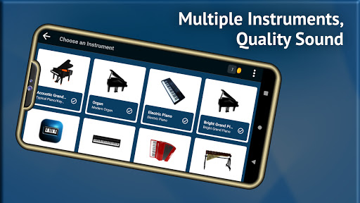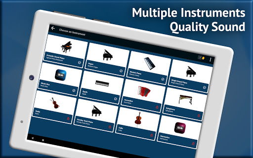 - Multiple instrument sounds to choose from - play sounds as Grand Piano, Organs, Electric Piano, Music Box, Violin, Xylophone, Synth etc.