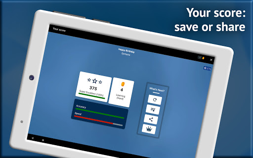- See your grade accumulate as you win each tile, and an overall feedback (grade, accuracy, and speed) on completion.