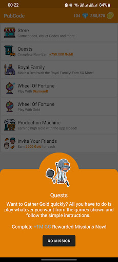 PubCode application is specially developed to earn UC and Royale Pass by playing games. All you have to do is play the game, collect gold and get UC or Royale Pass with one click from the in-app store in a short time. In addition, you can buy Uc and Royale Pass with the gold you have accumulated, if you want, you can get Steam keys, Steam wallet codes and game codes and e-pin codes of different games without paying of charge.