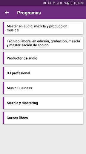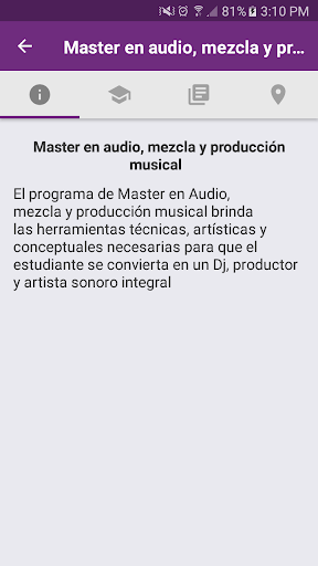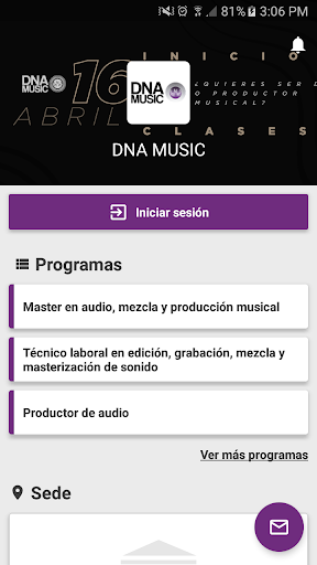 La aplicación móvil de DNA MUSIC permitirá a los aspirantes visualizar las carreras ofrecidas por la institución, de igual forma los estudiantes podrán visualizar sus notas, su horario de clase, interactuar por medio de las aulas virtuales y recibir notificaciones.