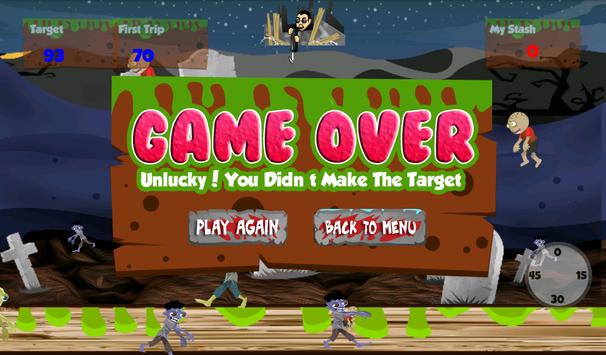 Remember that for each of the zombies you achieve annihilate have some points and have to reach the score that suggests the game, if you do well you can move from screen, if on the contrary, time is running out and you have not got the points necessary lose the game and have to start over!